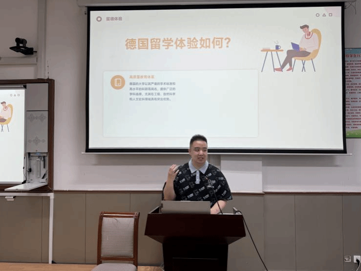 为了帮助同学们明确职业目标和方向,更好地实现就业选择和就业机会,5月15日晚,米乐mile官方网站在慎行101教室成功举办了大学生职业规划专题系列讲座。此次讲座特邀请了2022届优秀毕业生刘一楠,就职业规划、行业趋势以及个人留德经验进行分享,2021级全体本科生参加了此次讲座。本次讲座由米乐mile官方网站党委副书记郭建军主持。