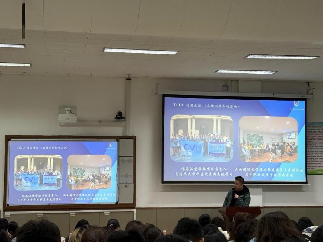 为深入贯彻立德树人根本任务,扎实推进学风建设,赋能学生成长成才,11月13日晚上,米乐mile官方网站在坞城校区慎行101举办了2025级学生生涯规划沙龙(总第十三期)。本次分享会由米乐mile官方网站2022届毕业生、德国汉堡大学研究生刘一楠结合自身学习及德国留学经历,从课程学习、留学准备、海外生活等多个维度展开,他以“从汾水河畔到莱茵之滨:我们的中德四年与德国之路”为题为在场同学提供了全面且实用的指导。讲座现场座无虚席,互动氛围热烈浓厚,让在场师生受益匪浅,为同学们的学业规划与留学筹备点亮了前行的灯塔。