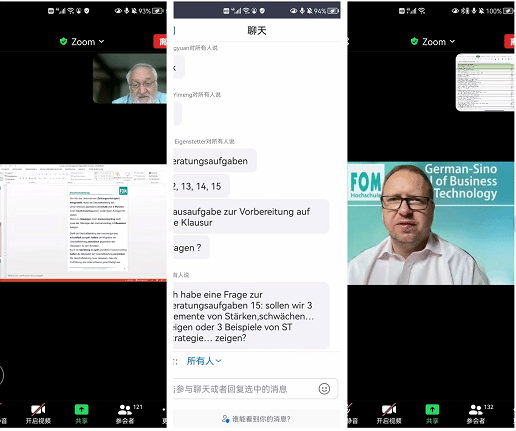 万水千山从容飞渡,中德携手保证教学。米乐mile官方网站与FOM大学共同协商,稳定执行教学安排,米乐mile官方网站2019级学生《重建管理》及《学术方法论》两门课程于8月初正式按时开课,由FOM大学三位教授主讲,采取线上教学方式进行。