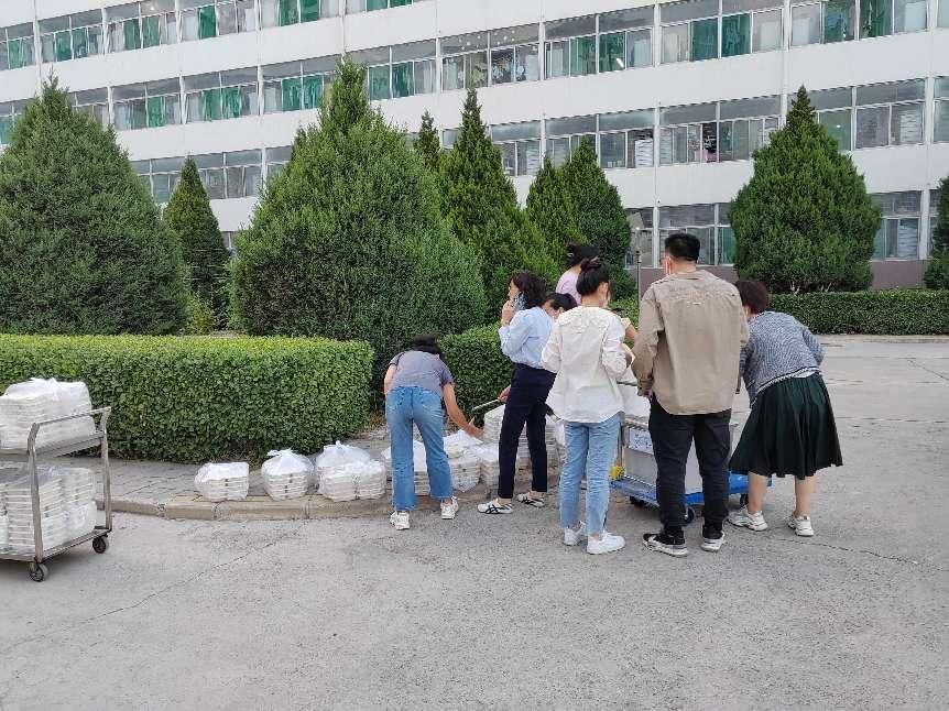 暖心送餐,助力抗疫。广大师生第一时间投入志愿服务,坚定站在疫情防控第一线,筑牢生命安全防线。拿到热腾腾、干净卫生的餐食,同学们倍感温暖,纷纷表示一定严格遵守学校疫情防控规定。大三学生任宇涛说到:“学院领导老师尽心尽力保证我们的一日三餐,从不间断的送到我们学生手里,食堂也在尽心尽力的为我们准备伙食,我们应该多一分耐心,多一点包容,做到师生齐心,共克时艰!”大二学生刘柏熙也表示:“开学返校,因为同学们需要在宿舍静默管理3天,所以每日给我们送饭的任务就落在了老师们的肩上,学院上下都在努力为大家送到热乎的饭菜,老师们辛苦了!”