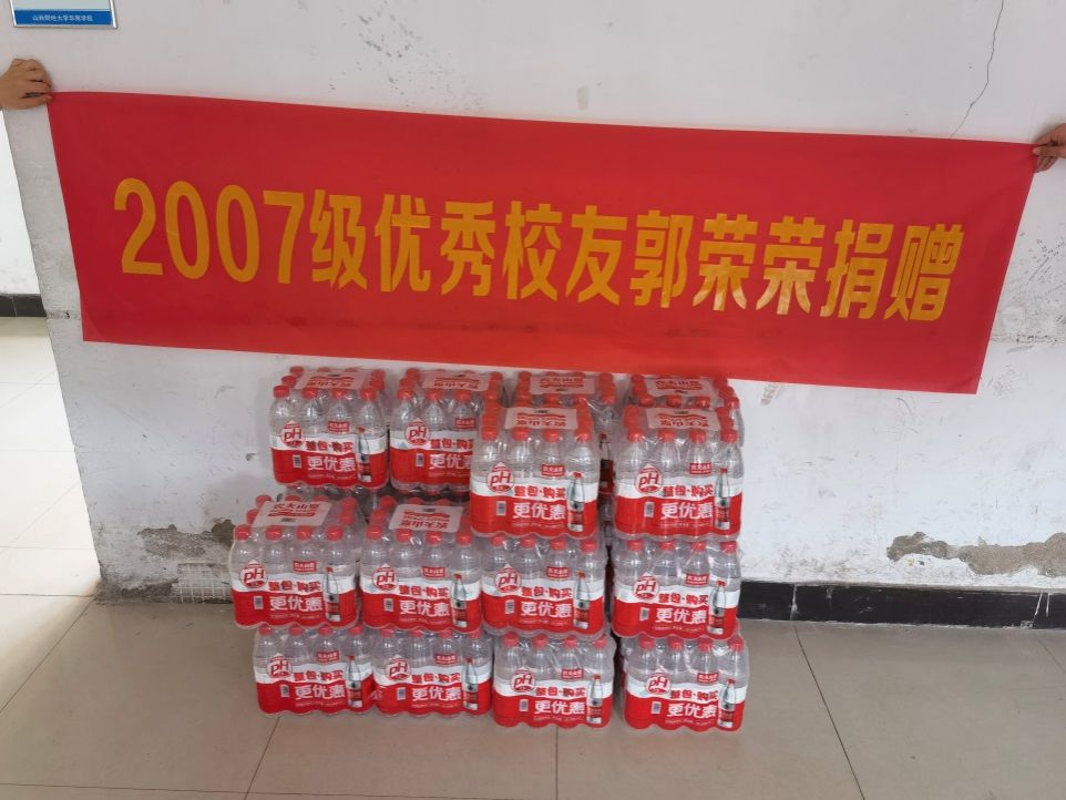 树高千尺不忘根,水流万里总思源。9月26日,米乐mile官方网站2007级优秀校友郭荣荣为母校捐赠了300瓶矿泉水、2011级优秀校友田晋安为母校捐赠了3000个医用口罩、300瓶免洗手消毒凝胶,为来自四面八方的中德2022级学子提供了爱心资助。