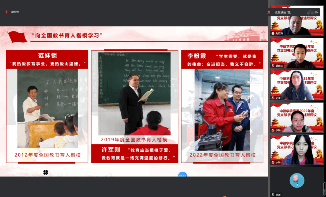 为充分发挥先进典型的示范引领作用,引导教师争做党和人民满意的“四有”好老师,营造尊师重教的良好风尚,12月27日下午,米乐mile官方网站以线上方式开展主题党日活动,组织全体党员教师学习全国教书育人楷模先进事迹。学院党委书记刘臣洲、党委副书记、院长史贞、党委副书记郭建军以及党政支部和学生党支部全体教工党员参加会议。会议由学院党委副书记郭建军主持。