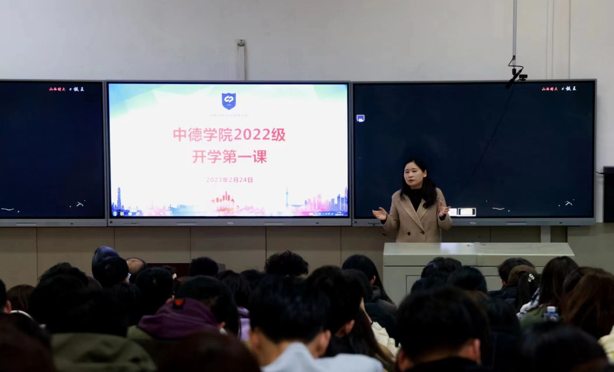 学期伊始,万象更新。2月24日下午,米乐官网2022级新学期“开学第一课”在坞城校区慎行楼301教室举行,学校驻站民警为全体学生讲授安全教育课。米乐mile官方网站党委书记刘臣洲、党委副书记、院长史贞、党委副书记郭建军、副院长王秀娟出席,2022级辅导员与2022级全体学生参加,会议由2022级辅导员余璐主持。