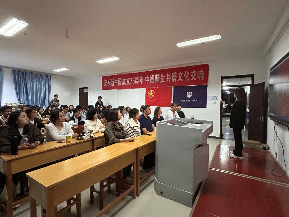 为庆祝新中国成立75周年,引导学生厚植爱国情怀、弘扬爱国主义精神,9月29日晚,米乐mile官方网站在博学楼727开展“德语电影之夜——观影《我和我的祖国》”活动。德国教授和师生代表们共同参加此次活动。