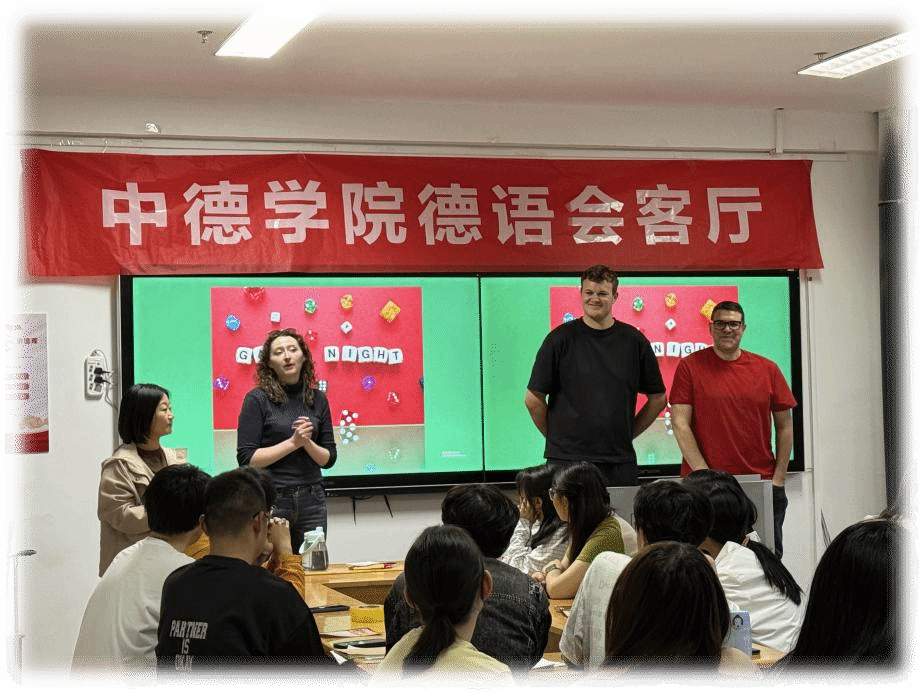 4月24日晚,博学楼727教室内灯光暖亮,米乐mile官方网站第四期德语会客厅“Boardgame Night”主题活动在此拉开序幕。本次德语会客厅以趣味桌游为载体,借助丰富多样的游戏形式,引领学生深入领会德语语言运用和德国文化内涵在德语学习进程中的重要意义,助力语言与文化所蕴含的知识力量在学生学习中充分发挥作用。活动紧密贴合学院学生的德语学习实际情况,通过设置各类德语相关游戏,组织学生在游戏过程中积极运用德语交流互动,以此提升学生的德语语言水平,培养学生对德语学习的兴趣和热情,为学生营造良好的德语学习环境,促进学生全面发展。德方教师Stefan Eymann先生, Agieszka Soblio女士, Julian Leon Neuhaus先生以及德语教师到场,与同学们共同沉浸于德语语言与文化的趣味互动中。