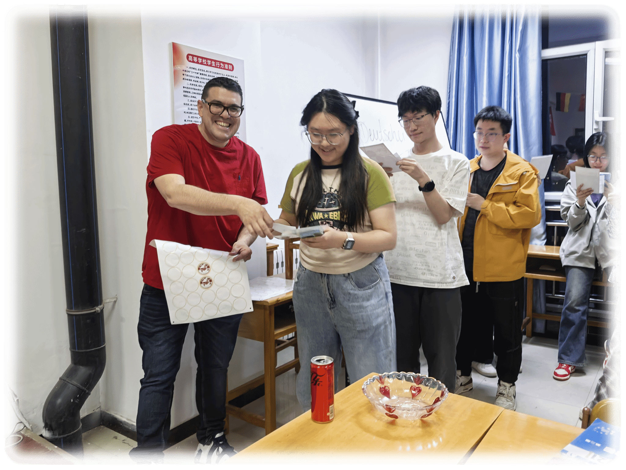 活动最后是兑换奖品环节,同学们凭借在各个游戏环节中获得的贴纸数量,兑换到了心仪的奖品。这些奖品不仅是对同学们在活动中出色表现的肯定,更是他们在德语学习道路上不断前进的见证。