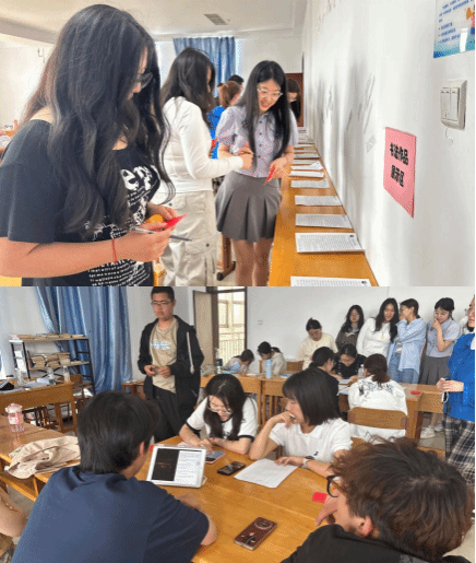在德语书法创作环节中,参赛者提交了与校庆主题相关的书法作品,字迹端正,内涵丰盈。活动现场,“互评互选”环节成为文化共鸣的生动体现——同学们手持选票,在作品前驻足凝视,以专业的眼光与热忱的态度投出心中的佳作。在选票传递的过程中,同学们不仅表达了对校庆情感的共鸣,更展现了对多元创作的尊重与包容。