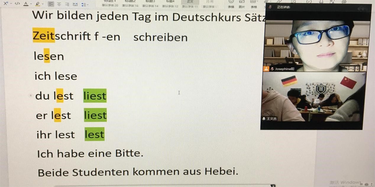 每天开始德语教学前,我会把本周已经学过的单词听力给同学们播放一次,要求所有同学开摄像头跟读,营造良好的德语学习的氛围,也提高了学生发音的准确性。