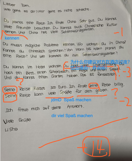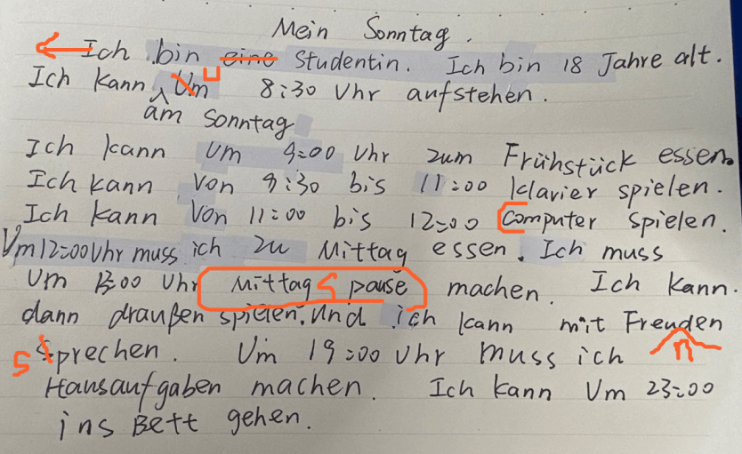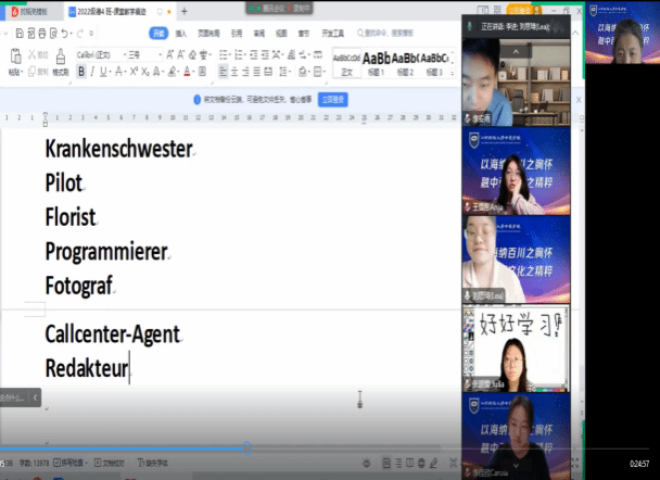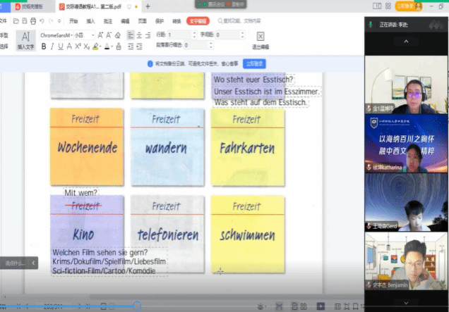 米乐mile官方网站德语四班二零二二学年的第十七个教学周介于12.19-12.23日,28个课时,按既定教学计划本周涉及Studio 21-A1-Einheit 8 - Berlin sehen (第8单元:看见柏林)。本周4班26位同学能全部按时到课,除个别同学因疫情影响身体不适请求不开摄像头,但保证在课外,课上回应基本积极。但课后作业仍有个别补交、漏交及不交现象存在。