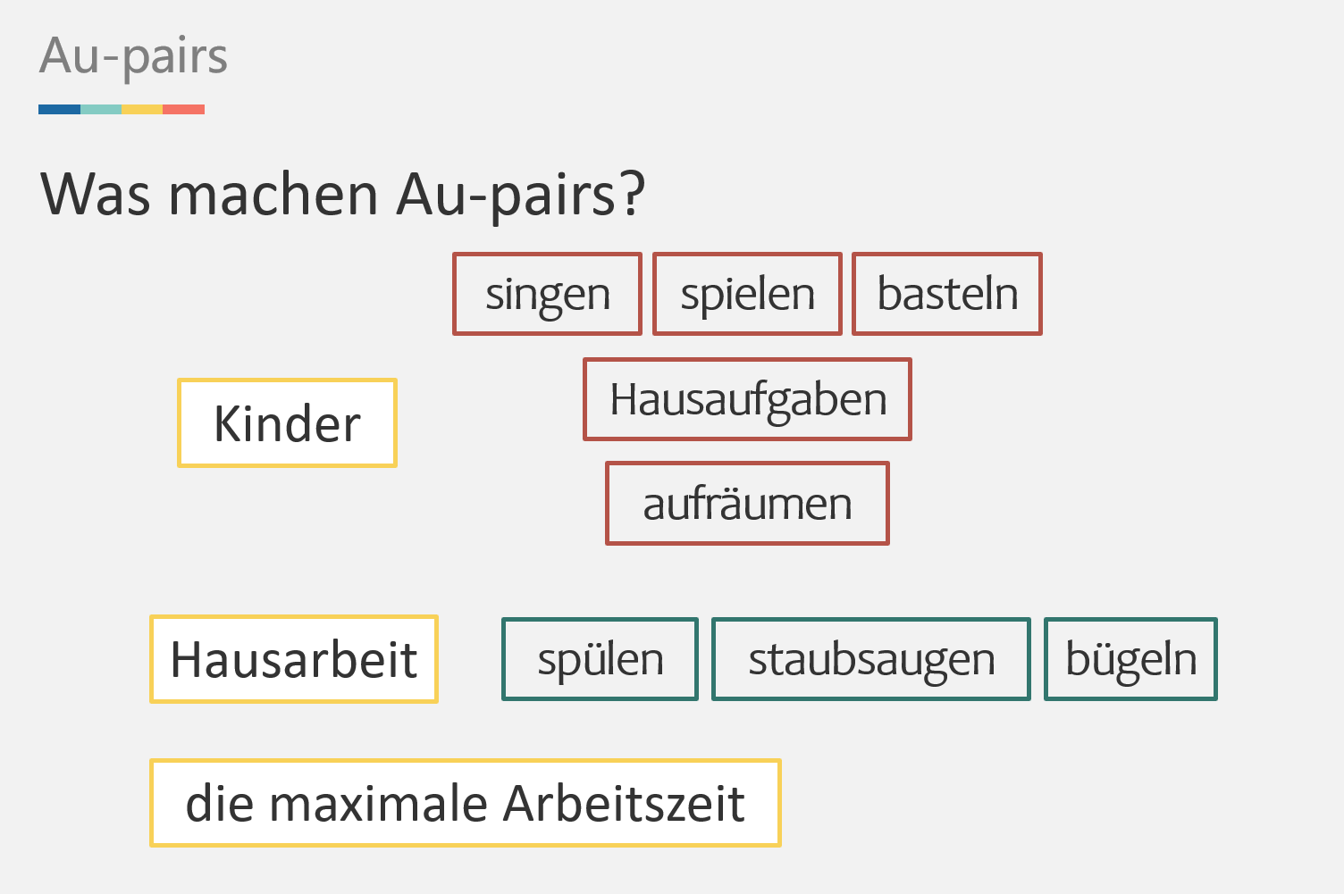 一、在背课文方面不再要求学生纯背诵,而是我给出关键词,他们来“复述”课文。在以往的课文背诵中,大部分学生都是死记硬背。这对于记忆力较好的学生不成问题,但对于记忆力不那么好的同学就很痛苦了:不是忘记介词,就是忘记动词;不是忘记变格,就是忘记语序。总之课文背得磕磕巴巴、丢三落四,背完了也不知道自己说了些什么。因此在本单元课文中,我在讲课文时就引导学生自己去总结每段内容、每个句子的中心意思,并给出关键词,看着关键词去复述课文。第一遍复述可以看课本,第二遍尽量不去看,第三遍脱离课本能够用自己的句子复述课文内容。不是死记硬背,也不是僵化的将中文译成德语,而是构建一套自己的德语思维。做到看到德语单词,能够想到它最合适的搭配并说出正确的句子。