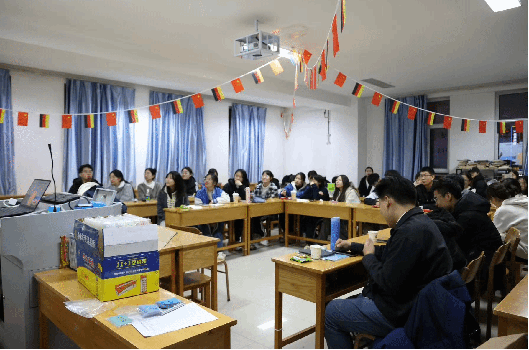 为丰富大学生的课余生活,使同学们在快乐轻松的氛围中学习德语、交流思想,开阔视野,激发大家学习德语的积极性,提升德语口语交流水平。10月27日,米乐mile官方网站在坞城校区博学楼727教室举办了德语口语交流活动——“德语会客厅(第一期)”,学院教学副院长陈啸、副院长王秀娟、德方助教Moritz Zischler以及全体德语老师出席了本次活动。