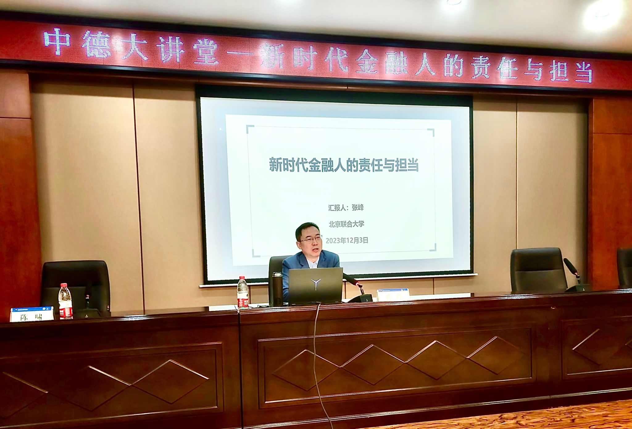 报告会上,张峰教授就新时代背景下,金融业的发展、改革与深化对金融人才提出的新要求为大家做了详细的分析和精彩的分享。他围绕新时代以来我国金融领域改革与发展过程中所面临的服务实体经济、防范金融风险和深化金融改革三大任务,介绍了新时代需要德才兼备的新金融人才。新金融人才需要秉持“金融为民”的思想,具备创新思维和专业技能,并且能够运用大数据、人工智能等金融科技手段解决实际金融问题,更好的服务于国家及广大人民群众。同时张峰教授也对中德学子提出了殷切希望,希望同学们能够秉持“金融为民”思想,强化使命担当,做具备扎实金融知识、敏锐市场洞察力、先进科技技能和良好职业道德的新金融人才。报告最后,张峰教授就本次报告及考研如何学习、如何留德读研等相关问题与同学们进行了互动交流。
