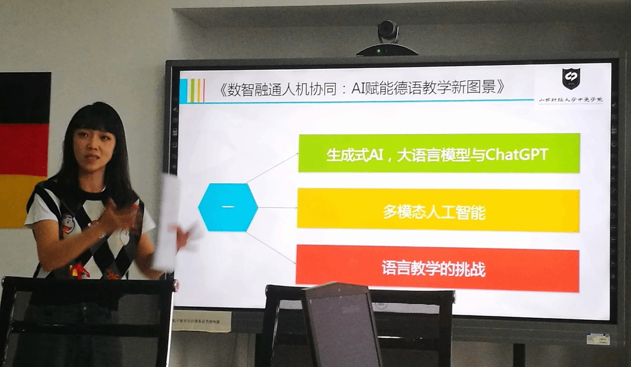 李玮老师首先分享了此次研修班中的四个主旨报告,全面而深入地探讨了德语教学领域的最新动态与未来趋势。这四个报告分别聚焦于德语教学的数智化转型、人机协同在德语教育中的创新应用、数字工具在德语教学实践中的探索与成效,以及前沿语言习得选题的研究与探索。在分享过程中,李老师结合具体案例,展示了数智化如何为德语教学带来前所未有的机遇与挑战,并分享了多种有效策略,帮助教师们在数智时代中更好地赋能德语教学,提升教学质量与效率。分享结束后,大家围绕德语教学的数智化转型路径、人机协同教学模式的可行性、数字工具的选择与应用技巧,以及前沿语言习得理论的实践应用等议题展开了深入的讨论与交流。这次分享不仅拓宽了老师们的视野,也为德语教学的创新发展注入了新的活力与灵感。