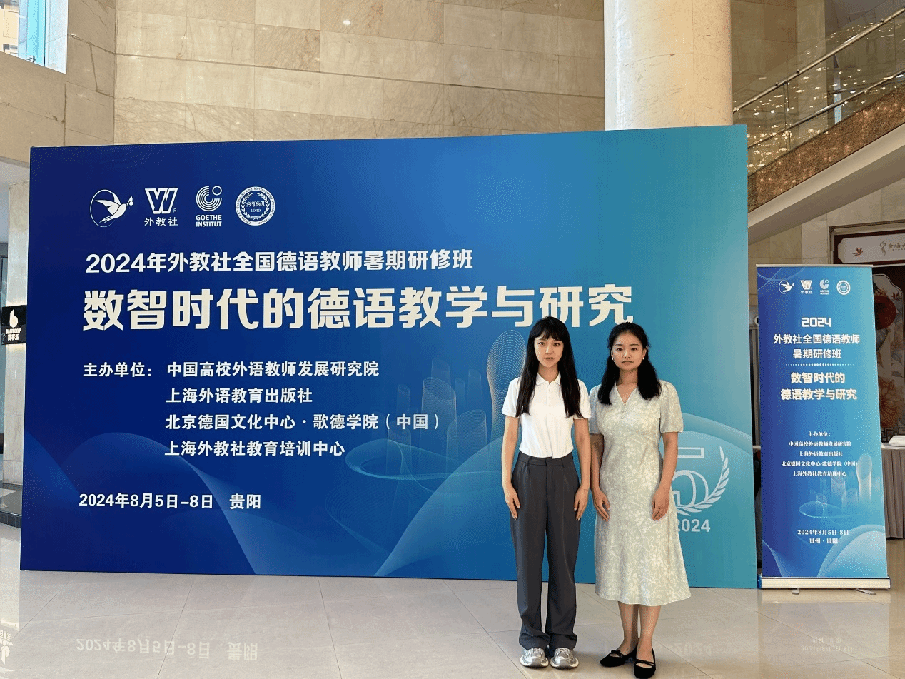 2024年8月5日至8月8日,2024年外教社全国德语教师暑期研修班在贵阳举办,此次研修班由中国高校外语教师发展研究院、上海外语教育出版社、北京德国文化中心·歌德学院(中国)及上海外教社教育培训中心共同主办的,以“数智时代的德语教学与研究”为主题,邀请中德两国的外语专家学者以及教育技术领域的专家,与全国高校及中学德语教师共同研讨德语课程建设与教学设计、德语教学资源的共建共享、人工智能在德语教学和科研中的应用等主题,赋能德全国德语教师发展。米乐mile官方网站德语教研室的李玮、王萌莎两位老师作为教师代表参加了此次研修班并获得培训证书。