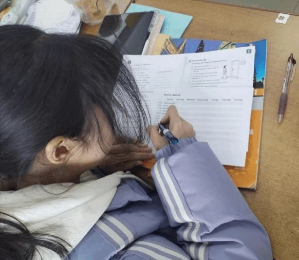 在外教进班授课期间,Janika Steiner 老师别出心裁地向学生们展示了几乎每位德国人必备的日程安排,引导学生们针对她的日程安排进行提问与回答互动。随后,还让大家写下自己本周的安排,并展开问答交流。