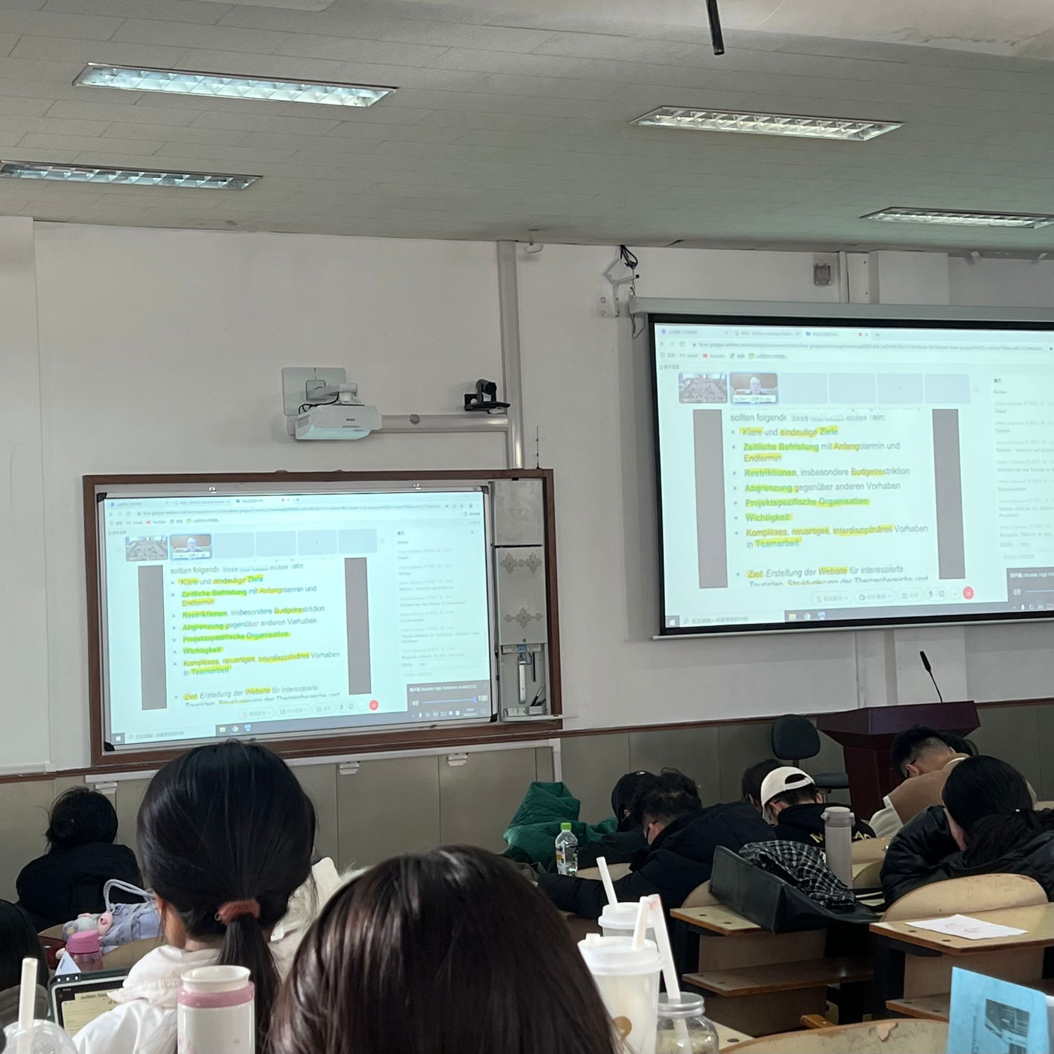 在这一年中,终于结束了线上课程,我非常高兴能够与德方教授面对面进行交流,探讨学术问题。与教授面对面交流的好处是我能够更清晰地表达自己的观点和疑问,也更容易获得及时的反馈和指导。这种互动的学习方式让我感受到了德国教育的独特魅力,教授们对学生的关注和支持让我倍感珍惜。