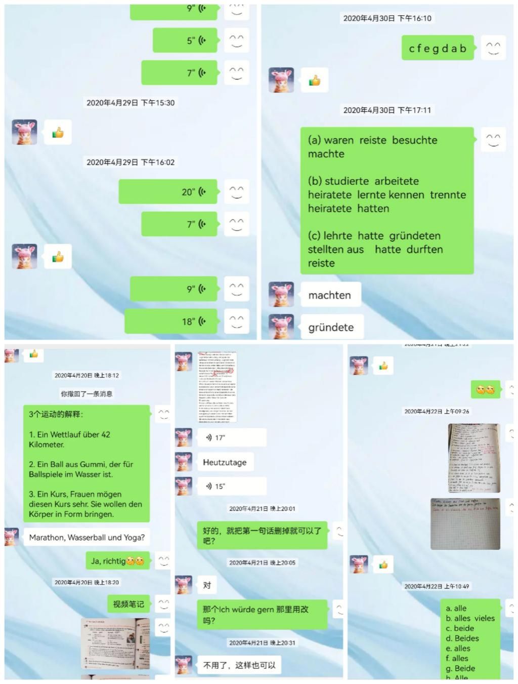 2019年10月8日,这是我正式学习德语的第一天。德语教学是学院的重点教学任务,因为它是我们整个四年的语言基础,因此,上早晚自习、学习语音语调、练习小舌音、背单词、和同学做对话等成为了大一课堂的常态,就这样,大一上半学期在李冠园老师的一堂堂生动的德语课中结束了。但在2020年年初,由于受到新冠肺炎疫情的突袭,我们只能将德语的学习转为线上进行,教学方式的改变考验着我们每一个人,所有人都需要尽快适应新的教学节奏,但学院依旧努力为我们打造优质的网课环境,德语老师也通过直播平台为我们耐心授课、批改作业。总之,从最初对这门外语的陌生感,到最后能够熟练运用,这些都离不开德语老师的认真讲解与帮助。在大一结束时,我也一次性高分通过了德语B1考试,并且幸运的入选了学院第一届组建的卓越班。大一一年虽忙碌辛苦,但却极其充实,能够在刚进入大学就初步掌握一门第二外语,现在想来的确是一件非常有意义的事情。