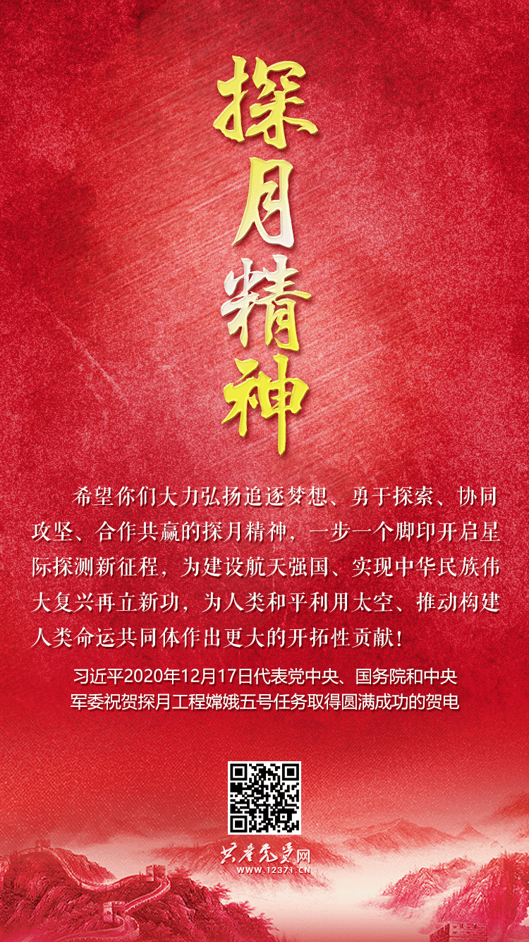 探月精神的历史背景主要围绕中国探月工程的实施和发展。‌自2004年起,中国正式启动月球探测工程——嫦娥工程,标志着中国在航天科技领域迈出了重要的一步。这一工程分为三个阶段:无人月球探测、载人登月和建立月球基地。嫦娥工程的启动,体现了中国对于探索宇宙、和平利用太空的千年梦想和不懈追求。‌2007年10月24日‌,嫦娥一号成功发射,实现了绕月飞行,为中国探月工程开启了新的篇章;‌2013年12月‌,嫦娥三号成功在月球表面着陆,标志着中国成为继苏联、美国后第三个实现地外天体软着陆的国家;‌2019年1月3日‌,嫦娥四号在月球背面预选区着陆,实现了人类历史上首次在月球背面软着陆和巡视勘察;‌2020年11月24日‌,嫦娥五号发射,并成功携带月球样品返回地球,实现了中国首次地外天体采样返回任务。2024年6月25日14时07分,嫦娥六号返回器降落在内蒙古四子王旗着陆场。嫦娥六号任务采集月球样品1935.3克,实现了世界首次月球背面自动采样返回。